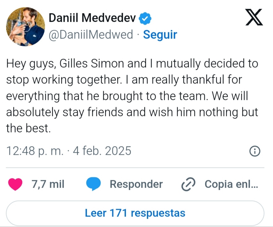 Ivanisevic, a través de un comunicado, expresó su gratitud por la oportunidad de trabajar con Rybakina. “Nuestro periodo de prueba tras el Australian Open ha concluido. Deseo a Elena y su equipo la mejor de las suertes en adelante”, escribió en su cuenta de Instagram.