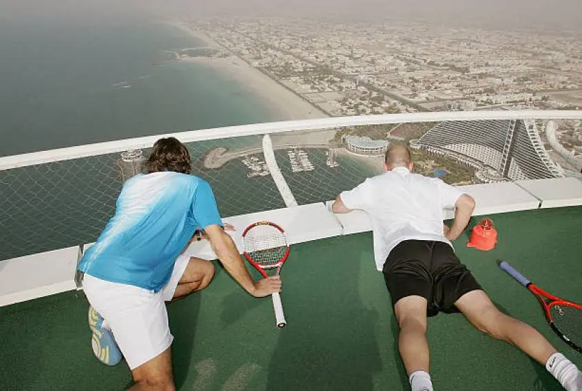A mediados de la primera década del siglo XXI, el tenis vivió uno de sus momentos más impactantes fuera de la competición oficial. No ocurrió en Wimbledon ni bajo los focos del US Open, sino en Dubái, donde Roger Federer y Andre Agassi disputaron un partido de exhibición único en el mundo, suspendidos a más de 200 metros de altura.